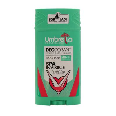 استیک ضد تعریق زنانه آمبرلا مدل اسپا بدون ایجاد حساسیت و ایجاد لک روی لباس از پوست در برابر تعریق و بوی نامطبوع بدن محافظت نموده و ماندگاری بالایی دارد. این محصول با رایحه دلپذیر شما را در طی روز خوشبو نگه میدارد.