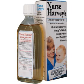 گریپ میکسچر نرس هارویز جهت پیشگیری و درمان نفخ، دردهای شکمی و باد شکم نوزادان، اطفال و کودکان فرموله شده است. این فرآورده حاوی ۱۴۵ میللیتر محلول بیکربنات سدیم همراه با اسانس شوید، زیره سیاه و سوکروز است. بیکربنات سدیم به کاهش اسید اضافی در معده کمک میکند.