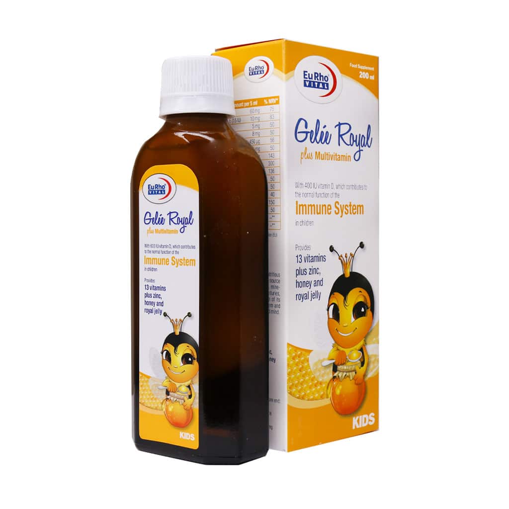 برای تقویت سیستم ایمنی کل افراد خانواده خود میتوانید از شربت ژل رویال پلاس مولتی ویتامین یوروویتال استفاده کنید؛ البته اگر کودک زیر 4 سال در منزل نداشته باشید. کودکان 4 سال به بالا، نوجوانان و بزرگسالان روزانه 5 میلیلیتر از این محصول را باید مصرف کنند تا سلامت عمومی بدن خود را ارتقا بخشند. بهتر است این شربت را در کنار وعده غذایی خود میل کنید. رویال ژلی و عسل از ترکیبات مغذی به کار رفته در این مکمل هستند. تقریبا همه ویتامینهای مورد نیاز بدن (13 ویتامین) و همچنین عنصر زینک در این محصول وجود دارند. این مولتی ویتامین میتواند در بهبود اشتها نیز موثر بوده و برای رشد جسمی و ذهنی کودکان و نوجوانان مطلوب باشد. همچنین برای حفظ سلامت پوست، مو و ناخن نیز این محصول کارایی دارد. می توان گفت این محصول بهترین شربت تقویت سیستم ایمنی بدن کودکان است.