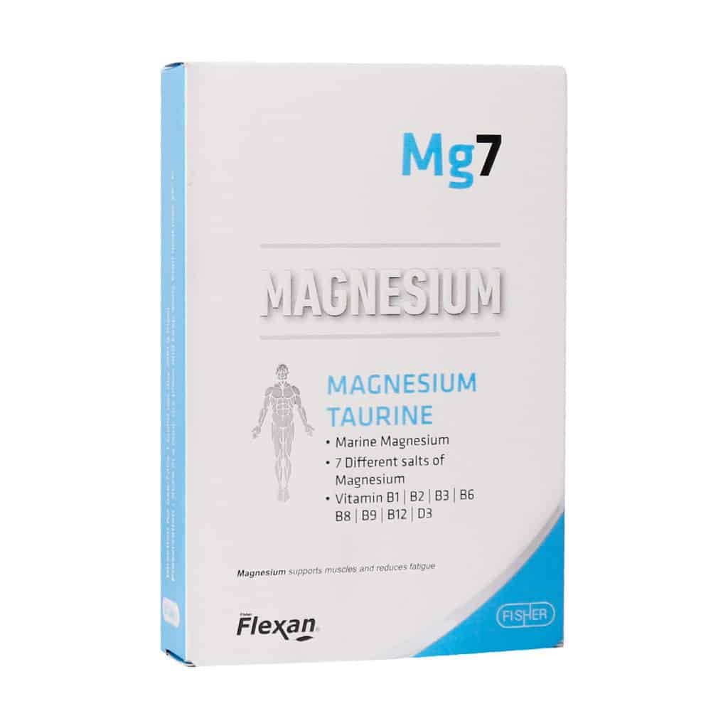 منیزیوم فلکسان حاوی 375 میلیگرم منیزیم در هر قرص است. قرص Mg7 در واقع از 7 ملح مختلف منیزیم شامل منیزیم سیترات، منیزیم هیدروکساید، منیزیم لاکتات، منیزیم بیس گلیسینات، منیزیم اکساید، منیزیم گلیسروفسفات و منیزیم کربونات تشکیل شده است. ترکیب ملحهای منیزیم میتواند به افزایش جذب و زیست دسترسی منیزیم کمک کند. همچنین فرد با مصرف فلکسان منیزیم 7 میتواند از فواید همه این ملحها به صورت همزمان بهرهمند گردد. بهعلاوه اکثر افراد تحمل گوارشی بالاتری نسبت به این ملحهای منیزیم دارند.