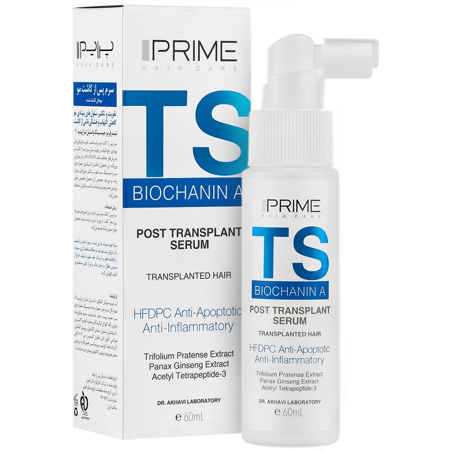 سرم پس از کاشت مو TS پرایم، راهکاری کامل برای تقویت و احیای موهای شما بعد از کاشت! یکی از چالش های اصلی پس از کاشت مو، التهاب و خشکی ناشی از این فرآیند است. استفاده از محصولات تخصصی مانند سرم بعد از کاشت مو پرایم، می تواند به طور قابل توجهی در کاهش مشکلات گفته شده موثر واقع گردد.