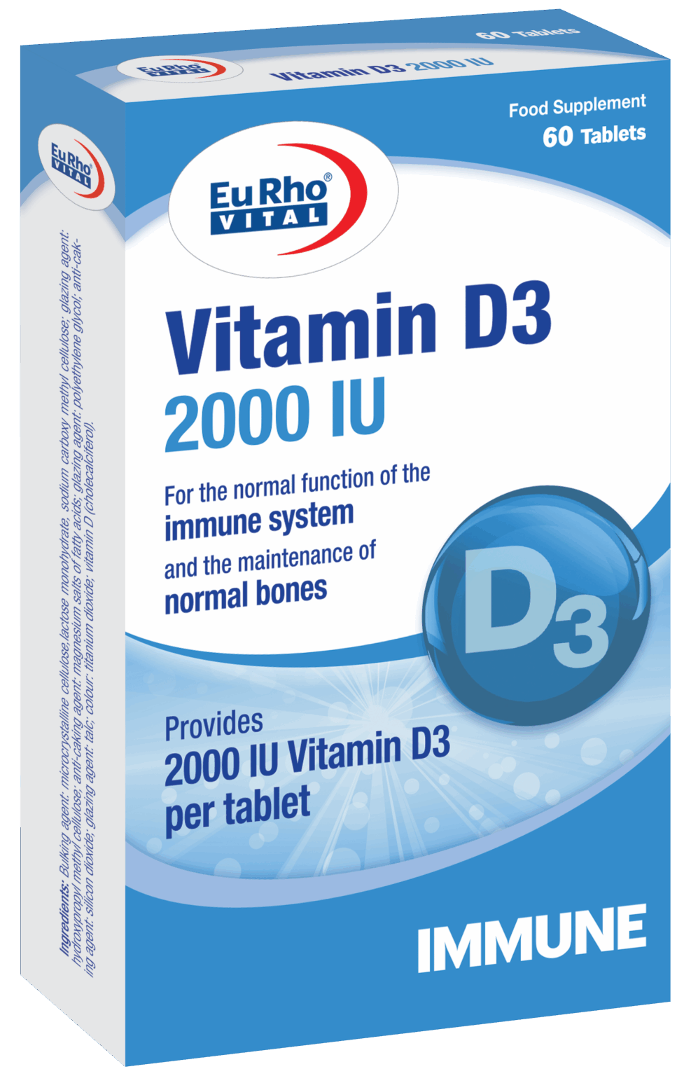 ویتامین دی 2000 یوروویتال، مکمل تغذیه ای به شکل دارویی قرص است که برای کمک به تأمین نیاز و رفع کمبود ویتامین D کاربرد دارد. ویتامین دی 2000 یوروویتال حاوی 2000 واحد بین المللی ویتامین دی در هر قرص است و به بهبود جذب کلسیم و فسفر، تقویت سلامت و استحکام استخوان ها و دندان ها و همچنین تقویت عملکرد سیستم ایمنی نیز کمک می کند.